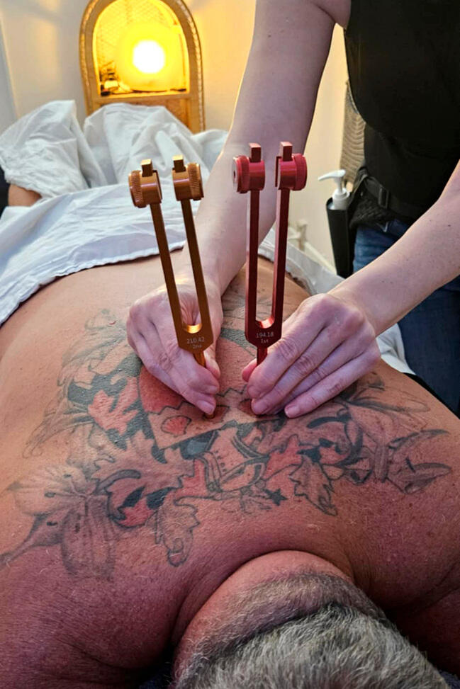 | Fysiske lydhealing med stemmegafler - Intropris frem til d. 31. maj Herefter 850,00 DDK | 60 min | 550,00 DKK |